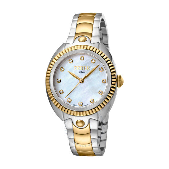 علبة فضية اللون من الفولاذ المقاوم للصدأ مع سوار ثنائي اللون من الفولاذ المقاوم للصدأ. إطار ثابت من الفولاذ المقاوم للصدأ ذهبي اللون. ميناء أبيض بعقارب ذهبية اللون وعلامات ساعات. نوع الميناء: تناظري. حركة كوارتز. زجاج معدني مقاوم للخدش. تاج قابل للسحب/الدفع. غطاء خلفي صلب. شكل دائري، مقاس العلبة: 34 مم، سمكها: 8 مم. عرض السوار: 14 مم، طوله: 7 بوصات. مشبك قابل للطي بزر ضغط. مقاومة للماء حتى عمق 50 مترًا / 165 قدمًا. الوظائف: الساعات، الدقائق، الثواني. تصميم عصري. علامة الساعة: صناعة سويسرية. ساعة فيري ميلانو كوارتز نسائية بمينا بيضاء FM1L088M0091.