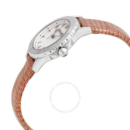 علبة من الفولاذ المقاوم للصدأ مع سوار وردي من جلد العجل (نقشة جلد الزواحف). إطار ثابت من الفولاذ المقاوم للصدأ. ميناء أبيض بعقارب فضية اللون وعلامات ساعات بأرقام عربية. علامات دقائق حول الحافة الخارجية. نوع الميناء: تناظري. حركة كوارتز. زجاج ياقوت مقاوم للخدش. تاج قابل للسحب/الدفع. غطاء خلفي صلب. شكل دائري. حجم العلبة: ٢٨ مم. سمكها: ٧.٥ مم. عرض السوار: ١٨ مم. طول السوار: ٧ بوصات. مشبك تانغ. مقاومة للماء حتى عمق ٥٠ مترًا / ١٦٥ قدمًا. وظائفها: الساعات، الدقائق، الثواني. تصميم عصري. ساعة روبرتو كافالي كوارتز نسائية بمينا بيضاء RV1L049L0016.