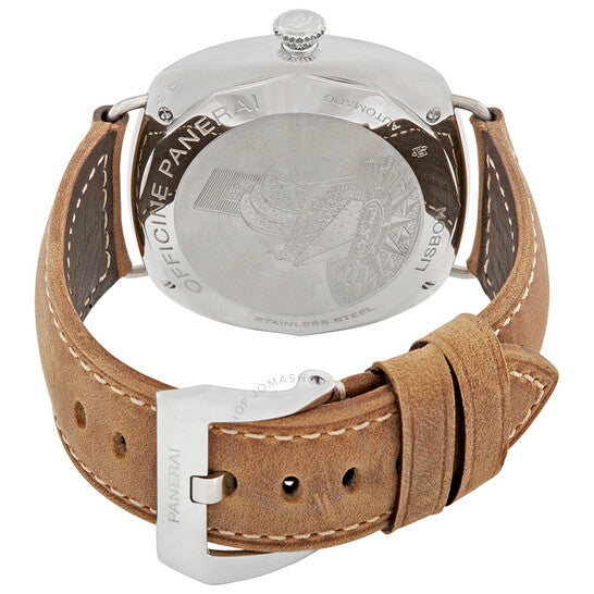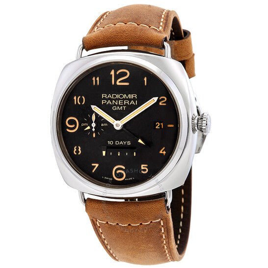 علبة فضية اللون من الفولاذ المقاوم للصدأ مع سوار من جلد العجل البني. إطار ثابت من الفولاذ المقاوم للصدأ مصقول فضي اللون. ميناء أسود مع عقارب فضية مضيئة وعلامات ساعات عربية. نوع الميناء: تناظري. عقارب وعلامات مضيئة. عرض التاريخ عند موضع الساعة 3. ميناءان فرعيان يعرضان: مؤشر 24 ساعة ومؤشر احتياطي الطاقة. حركة بانيراي كاليبر P.2003 أوتوماتيكية، تحتوي على 25 جوهرة، مكونة من 281 جزءًا، تنبض بسرعة 28800 ذبذبة في الساعة، ولديها احتياطي طاقة لمدة 240 ساعة تقريبًا. كريستال ياقوت مقاوم للخدش. غطاء خلفي صلب. شكل العلبة وسادة، حجمها: 47 مم. عرض السوار: 27 مم / 22 مم. مشبك تانغ. مقاومة للماء حتى عمق 100 متر / 330 قدمًا. الوظائف: الساعات، الدقائق، الثواني الصغيرة، التاريخ، توقيت غرينتش، مؤشر 24 ساعة، مؤشر احتياطي الطاقة، إعادة ضبط الثواني. معلومات إضافية: إصدار محدود. سلسلة راديومير. تصميم ساعة فاخرة. علامة الساعة: صناعة سويسرية. ساعة بانيراي راديومير أوتوماتيكية للرجال بمينا أسود PAM00550.