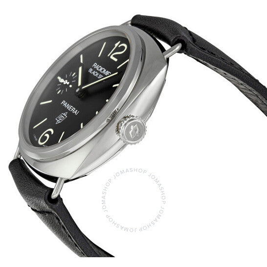 علبة فضية اللون من الفولاذ المقاوم للصدأ مع سوار جلدي أسود. إطار ثابت من الفولاذ المقاوم للصدأ فضي اللون. ميناء أسود بعقارب ومؤشرات ساعات سوداء مضيئة. أرقام عربية تُشير إلى موضعي الساعة 6 و12. مؤشرات دقائق حول الحافة الخارجية. نوع الميناء: تناظري. عقارب ومؤشرات مضيئة. موانئ فرعية للثواني. آلية حركة بانيراي كاليبر OP II يدوية التعبئة، مبنية على ETA 6497-1، تحتوي على 17 جوهرة، تنبض بتردد 21600 ذبذبة في الساعة، ولديها احتياطي طاقة يقارب 56 ساعة. زجاج من الياقوت المقاوم للخدش. تاج مُخدّد. غطاء خلفي صلب. شكل العلبة وسادة، حجم العلبة: 45 مم، سمكها: 15.2 مم. عرض السوار: 22 مم. مشبك تانغ. مقاومة للماء حتى عمق 100 متر / 330 قدمًا. الوظائف: الساعات، الدقائق، الثواني الصغيرة، الكرونومتر. تصميم ساعة كاجوال. علامة الساعة: صناعة سويسرية. ساعة بانراي راديومير بلاك سيل للرجال PAM00380.