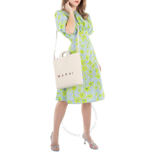حقيبة مارني النسائية توت. رمز المنتج: SBMP0179Q0-SHELL. اللون: صدفي. المقاس: 28 × 30 × 7 سم. حقيبة مارني تروبيكاليا توت من الرافيا. تتميز حقيبة تروبيكاليا بمزيج من الجلد وقماش الرافيا، ومقبض منقوش، وحزام كتف جلدي قابل للفصل، وقاعدة جلدية متينة، ولمسات معدنية ذهبية اللون، وشعار مطرز على الجهة الأمامية، ومساحة رئيسية واسعة. 52% قطن، 48% بولي أميد؛ التفاصيل: 100% جلد. صنع في إيطاليا.