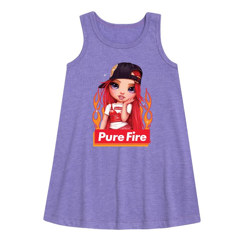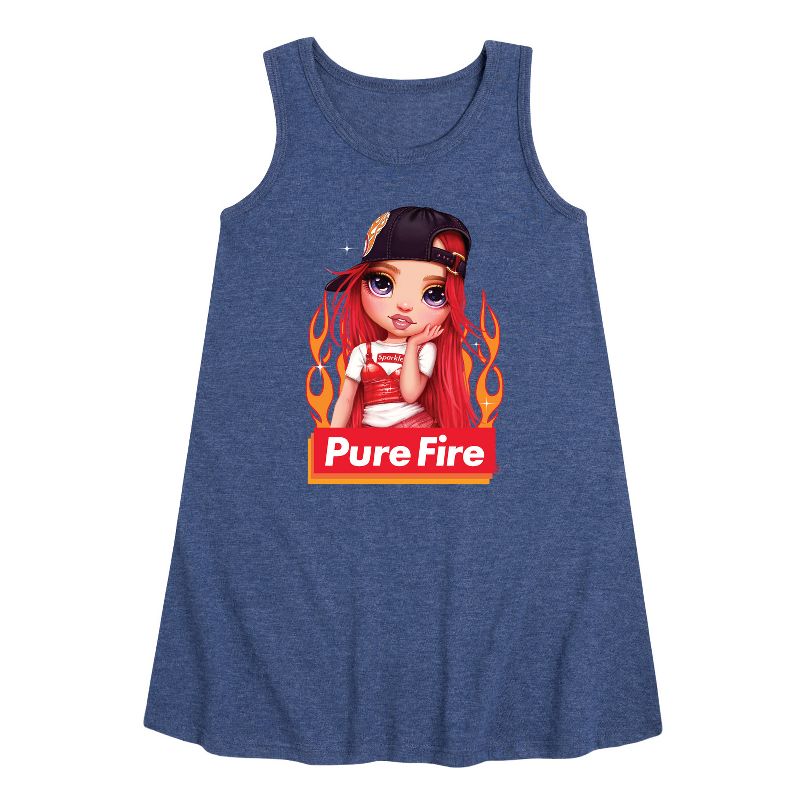 فستان بتصميم حرف A من رينبو هاي - بيور فاير - للفتيات الصغيرات والشابات - تألقي بتصاميم رينبو هاي الجرافيكية التي تُبرز رواد الموضة مثل روبي أندرسون، وبوبي روان، وساني ماديسون، وفيوليت ويلو. بألوانها الزاهية وأسلوبها العصري، تحتفي هذه التصاميم بالإبداع والتفرد.