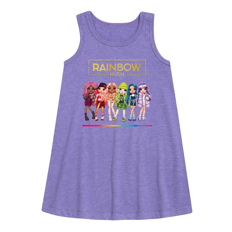 رينبو هاي - تشكيلة دمى اللعب - فستان بقصة حرف A للفتيات الصغيرات والشابات - تألقي بأزياء رينبو هاي الجرافيكية التي تُبرز رواد الموضة مثل روبي أندرسون، وبوبي روان، وساني ماديسون، وفيوليت ويلو. بألوانها الزاهية وأسلوبها العصري، تحتفي هذه التصاميم بالإبداع والتفرد.