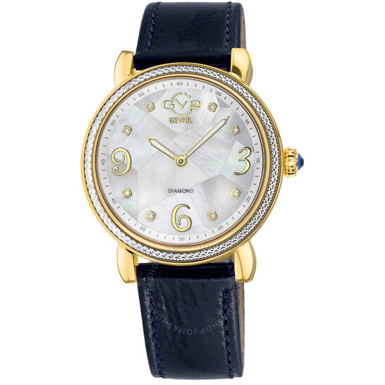 علبة من الفولاذ المقاوم للصدأ بلون الذهب الأصفر مع سوار جلدي أزرق. إطار ثابت من الفولاذ المقاوم للصدأ بلون الذهب الأصفر. ميناء من عرق اللؤلؤ مع عقارب من الذهب الأصفر وأرقام عربية وعلامات ساعات. علامات دقائق حول الحافة الخارجية. نوع الميناء: تناظري. عقارب مضيئة. حركة كوارتز روندا كاليبر 762. زجاج ياقوت مقاوم للخدش. تاج قابل للسحب/الدفع. غطاء خلفي صلب. شكل دائري، حجم العلبة: 37 مم، سمكها: 8.5 مم. عرض السوار: 18 مم. مشبك بإبزيم. مقاومة للماء حتى عمق 50 مترًا / 165 قدمًا. الوظائف: الساعة، الدقائق. معلومات إضافية: 8 ماسات. سلسلة رافينا. تصميم عصري. علامة الساعة: سويسرية. ساعة رافينا GV2 من جيفريل، بمينا من عرق اللؤلؤ، للنساء، 12612.