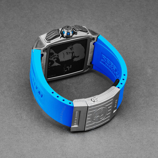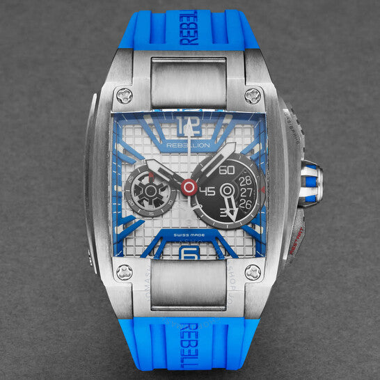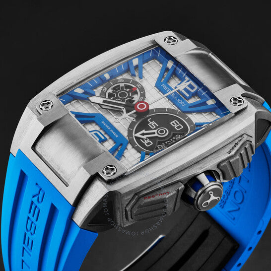 علبة تيتانيوم رمادية اللون مع سوار مطاطي أزرق. إطار ثابت من التيتانيوم الرمادي. ميناء أزرق مع عقارب وعلامات ساعات سوداء. علامات دقائق حول الحافة الخارجية. نوع الميناء: تناظري. عرض التاريخ عند موضع الساعة 3. آلية حركة أوتوماتيكية. زجاج ياقوت مقاوم للخدش. تاج قابل للسحب/الدفع. غطاء خلفي صلب. شكل العلبة مستطيل، مقاسها: 38.5 مم، سمكها: 13.5 مم. عرض السوار: 30 مم. مشبك قابل للطي بزر ضغط. مقاومة للماء حتى عمق 30 مترًا / 100 قدم. الوظائف: التاريخ، الساعة، الدقائق، الثواني. معلومات إضافية: lemo 75. سلسلة Re-volt. تصميم ساعة فاخرة. ساعة Rebellion Re-Volt أوتوماتيكية للرجال بمينا أزرق RB.REV.CH.LEM75.