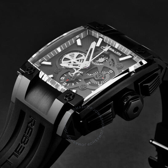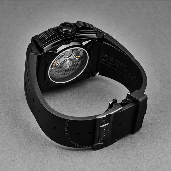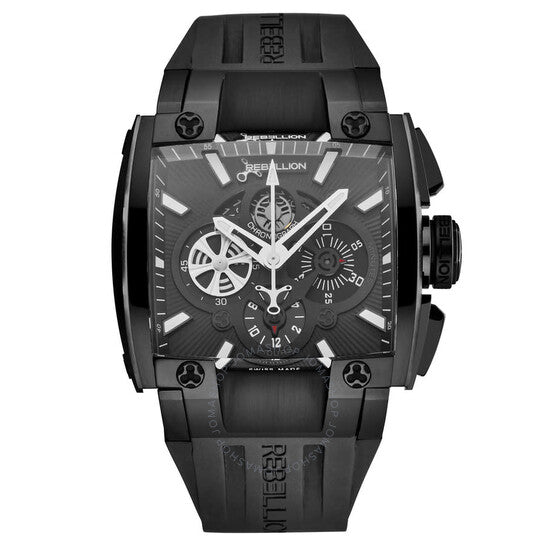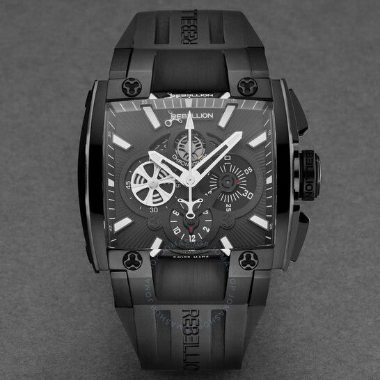 علبة سوداء من الفولاذ المقاوم للصدأ مع سوار مطاطي أسود. إطار ثابت من الفولاذ المقاوم للصدأ أسود. ميناء أسود بعقارب فضية اللون وعلامات ساعات. علامات دقائق حول الحافة الخارجية. نوع الميناء: تناظري. كرونوغراف - ثلاثة أقراص فرعية تعرض: ٦٠ ثانية، ٣٠ دقيقة، و١٢ ساعة. حركة أوتوماتيكية من عيار كونسيبتو ٠٢١٢١ دي دي. زجاج ياقوتي مقاوم للخدش. تاج قابل للسحب/الدفع. غطاء خلفي شفاف. شكل العلبة مربع، مقاسها: ٤٨ مم، سمكها: ١٩ مم. عرض السوار: ٣٤ مم. مشبك قابل للطي بزر ضغط. مقاومة للماء حتى عمق ١٠٠ متر / ٣٣٠ قدمًا. الوظائف: كرونوغراف، ساعات، دقائق، ثوانٍ. سلسلة Re1. تصميم ساعة فاخرة. علامة الساعة: صناعة سويسرية. ساعة ريبيليون Re1 كرونوغراف أوتوماتيكية للرجال بمينا سوداء RB.RE1.CH.SB.AB.