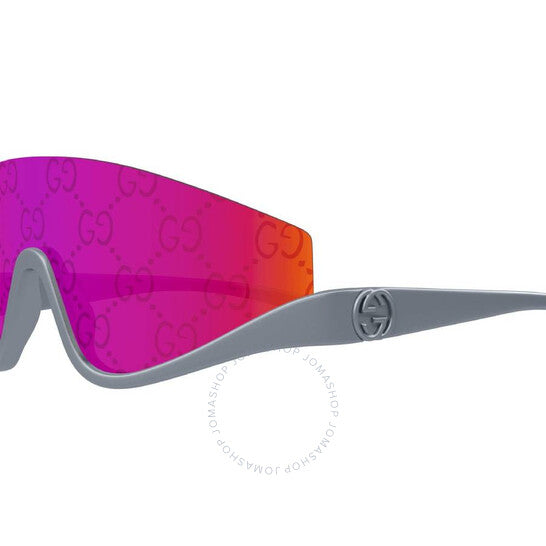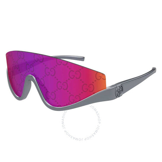 نظارات شمسية من غوتشي. رقم السلسلة: GG1650S. رمز اللون: 009. الشكل: درع. عرض العدسة: 99 مم. جسر العدسة: 1 مم. طول الذراع: 110 مم. حماية 100% من الأشعة فوق البنفسجية. غير مستقطبة. مادة الإطار: بلاستيك. لون الإطار: روثينيوم معدني. نوع العدسات: شعار أحمر. نمط الحافة: شبه بدون إطار. رمز UPC/EAN: 889652501000. نظارات شمسية غوتشي حمراء بشعار درع للنساء GG1650S 009 99.