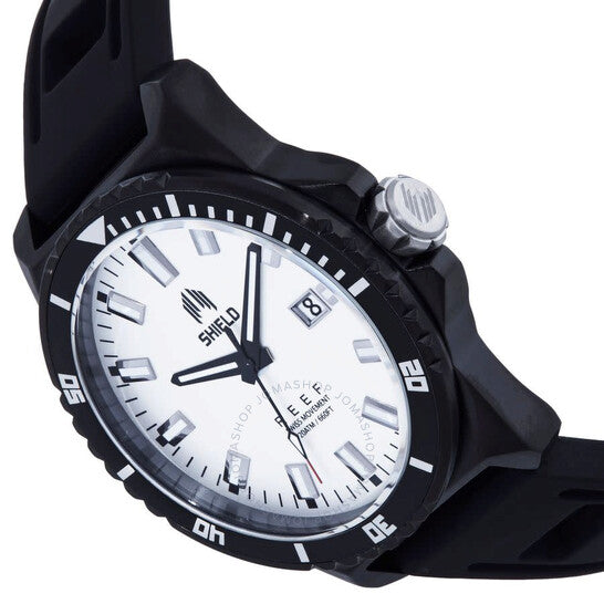 علبة من الفولاذ المقاوم للصدأ بجودة جراحية 316L حركة كوارتز سويسرية دقيقة روندا 515 غير لامعة مقاومة للخدش كريستال معدني غطاء خلفي من الفولاذ المقاوم للصدأ منقوش عليه شعار إطار أحادي الاتجاه تاج لولبي حزام مطاطي مشبك من الفولاذ المقاوم للصدأ منقوش عليه شعار عقارب مضيئة علامات مضيئة عرض التاريخ قطر العلبة 45 مم مقاومة للماء حتى 20 ATM (معتمدة للغوص العميق الاحترافي)