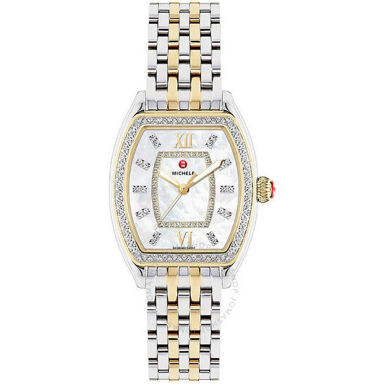 علبة وسوار من الفولاذ المقاوم للصدأ ثنائي اللون (فضي وذهبي). إطار ثابت ثنائي اللون (فضي وذهبي) مرصع بالألماس. ميناء من عرق اللؤلؤ مع عقارب ذهبية اللون وعلامات ساعات رومانية مرصعة بالألماس. نوع الميناء: تناظري. عقارب وعلامات مضيئة. حركة كوارتز. زجاج ياقوت مقاوم للخدش. تاج قابل للسحب/الدفع. غطاء خلفي صلب. شكل العلبة وسادة، مقاسها: 31 مم × 32 مم. مشبك قابل للطي بزر ضغط. مقاومة للماء حتى عمق 50 مترًا / 165 قدمًا. الوظائف: الساعات، الدقائق، الثواني. سلسلة ريليف. طراز ساعة رسمية. علامة الساعة: صناعة سويسرية. ساعة ميشيل ريليف كوارتز نسائية مرصعة بالألماس MWW19B000002.