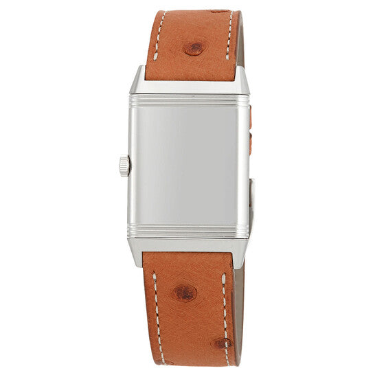 علبة فضية اللون من الفولاذ المقاوم للصدأ مع سوار من جلد النعام البني. إطار ثابت من الفولاذ المقاوم للصدأ فضي اللون. ميناء فضي بعقارب زرقاء وعلامات ساعات رقمية عربية. نوع الميناء: تناظري. ميناء فرعي واحد يعرض: ثواني صغيرة. حركة جيجر-لوكولتر كالبر JLC 854A/2 يدوية التعبئة، تحتوي على 19 جوهرة، تنبض بتردد 21600 ذبذبة في الساعة، ولديها احتياطي طاقة لمدة 42 ساعة تقريبًا. زجاج ياقوتي مقاوم للخدش. غطاء خلفي صلب. هيكل مستطيل الشكل، أبعاده: 42.9 مم × 25.5 مم. مشبك بإبزيم دبوسي. مقاومة للماء حتى عمق 30 مترًا / 100 قدم. الوظائف: الساعات، الدقائق، الثواني. سلسلة ريفيرسو الكلاسيكية. طراز ساعة رسمية. علامة الساعة: صناعة سويسرية. ساعة جيجر-لوكولتر ريفيرسو الكلاسيكية النسائية بمينا فضي وجلد Q2438521.