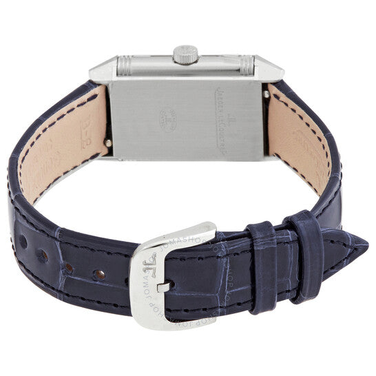 علبة من الفولاذ المقاوم للصدأ مع سوار أزرق من جلد التمساح. إطار ثابت من الفولاذ المقاوم للصدأ. ميناء فضي اللون بعقارب زرقاء وعلامات ساعات بأرقام عربية. علامات دقائق حول حلقة داخلية. نوع الميناء: تناظري. حركة كوارتز. زجاج ياقوت مقاوم للخدش. تاج قابل للسحب/الدفع. غطاء خلفي صلب. شكل العلبة مستطيل. أبعاد العلبة: 33.2 مم / 20.7 مم. سمك العلبة: 8.7 مم. مشبك تانغ. مقاومة للماء حتى عمق 30 مترًا / 100 قدم. الوظائف: الساعات، الدقائق. معلومات إضافية: العلبة الأصلية، دليل الاستخدام (ملحقات كاملة). سلسلة ريفيرسو. تصميم ساعة فاخرة. علامة الساعة: صناعة سويسرية. ساعة جيجر لوكولتر ريفيرسو كوارتز نسائية بمينا فضي Q2618540.