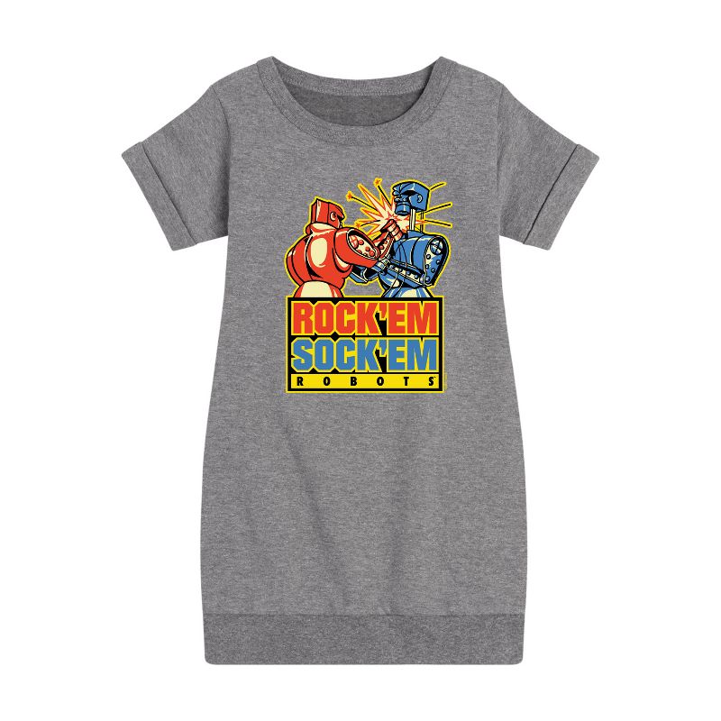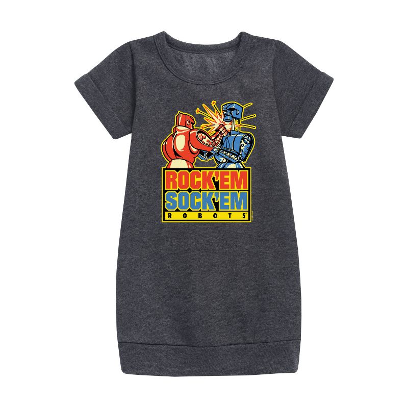 فستان روك إم سوك إم الصوفي - هزاز أحمر وقنبلة زرقاء - للفتيات الصغيرات والشابات - عززي أناقتكِ مع ملابس روك إم سوك إم الجرافيكية التي تحمل شعار الهزاز الأحمر والقنبلة الزرقاء. هذه التصاميم الكلاسيكية تُحيي صراع عمالقة البلاستيك الكلاسيكي.
