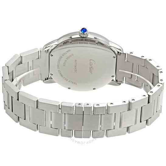 علبة من الفولاذ المقاوم للصدأ مع سوار من الفولاذ المقاوم للصدأ. إطار ثابت من الفولاذ المقاوم للصدأ. ميناء أزرق بعقارب فضية اللون وعلامات ساعات بأرقام رومانية. علامات ٢٤ ساعة. علامات دقائق حول حلقة داخلية. نوع الميناء: تناظري. عرض التاريخ عند موضع الساعة ٣. حركة أوتوماتيكية. كريستال ياقوتي مقاوم للخدش. تاج سحب/دفع مرصع بحجر سبينيل أزرق كابوشون. غطاء خلفي صلب. شكل دائري. حجم العلبة: ٤٢ مم. سمكها: ٨.٣٦ مم. مشبك مخفي قابل للطي. مقاومة للماء حتى عمق ٣٠ مترًا / ١٠٠ قدم. الوظائف: التاريخ، الساعة، الدقائق، الثواني. طراز ساعة رسمية. علامة الساعة: صناعة سويسرية. ساعة كارتييه روند سولو أوتوماتيكية للرجال بمينا أزرق WSRN0023.