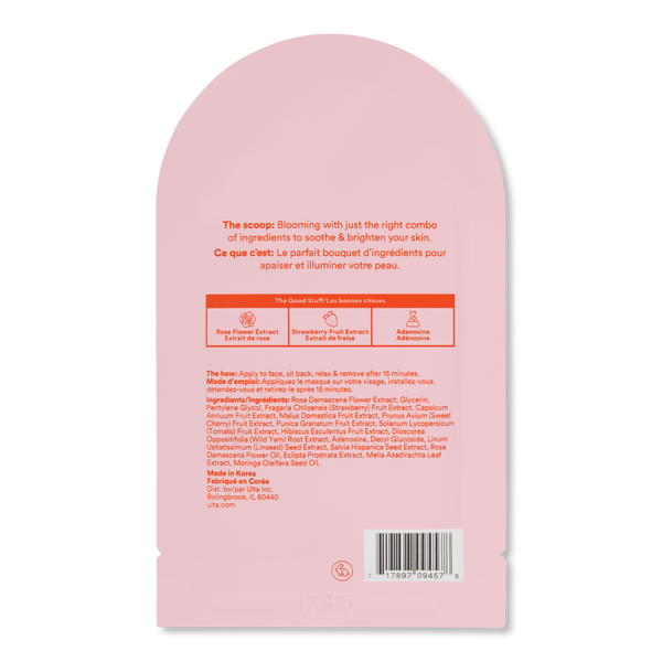 حافظي على هدوئك وانتعاشك. جربي قناع الورد والفراولة المهدئ من مجموعة Ulta Beauty، وهو مزيج مهدئ من مستخلصات الورد والفراولة، يمنح بشرتكِ شعورًا بالنشاط والإشراق.