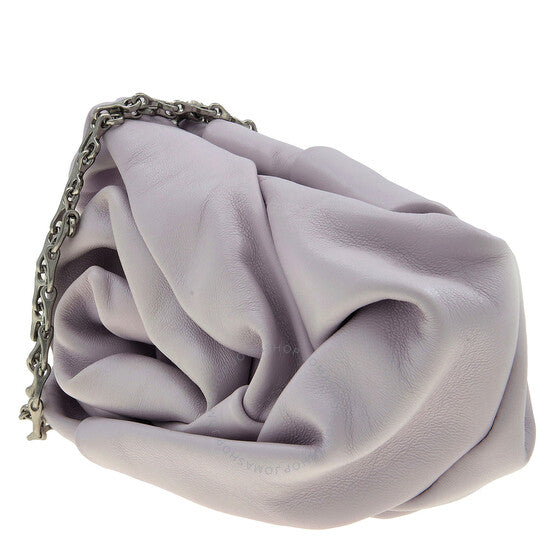 حقيبة كلاتش نسائية من بربري. رمز المنتج: 8079186. اللون: ضبابي. حقيبة كلاتش وردية من جلد النابا بسلسلة من بربري بلون ضبابي. هذه الحقيبة خفيفة الوزن، بتصميمها الناعم، غير مبطنة، بتصميمها المجمّع المستوحى من نقشة الورد. حزام السلسلة "B" يُتيح لها الانتقال من حقيبة كلاتش إلى حقيبة كتف. مصنوعة من جلد خروف 100%، ومصنوعة في إيطاليا.