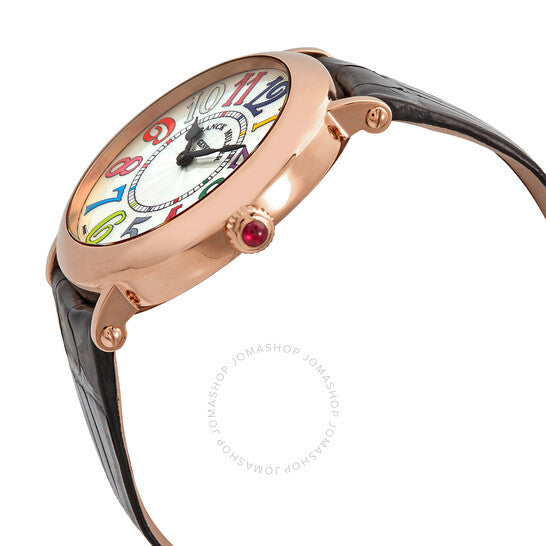 علبة من الذهب الوردي عيار ١٨ قيراطًا مع سوار جلدي أسود. إطار ثابت من الذهب الوردي عيار ١٨ قيراطًا. ميناء فضي بعقارب سوداء وعلامات ساعات بأرقام عربية. علامات دقائق حول حلقة داخلية. نوع الميناء: تناظري. حركة كوارتز. زجاج ياقوت مقاوم للخدش. تاج قابل للسحب/الدفع. غطاء خلفي صلب. شكل دائري. حجم العلبة: ٣٨ مم. سمكها: ٨.٥ مم. عرض السوار: ١٩ مم. طول السوار: ٧ بوصات. مشبك تانغ. مقاومة للماء حتى عمق ٣٠ مترًا / ١٠٠ قدم. الوظائف: الساعات، الدقائق. سلسلة دائرية. تصميم ساعة فاخرة. علامة الساعة: صناعة سويسرية. ساعة فرانك مولر كوارتز دائرية نسائية بمينا فضي ٨٠٣٨QZCOLV5NSIL.