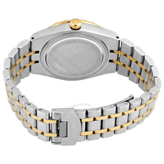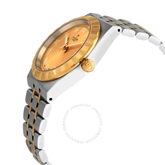 علبة من الفولاذ المقاوم للصدأ فضية اللون، مع سوار من الفولاذ المقاوم للصدأ فضي اللون، بوصلات من الذهب الأصفر عيار 18 قيراطًا. إطار ثابت من الذهب الأصفر عيار 18 قيراطًا. ميناء بلون الشمبانيا مع عقارب مضيئة من الذهب الأصفر، وعلامات ساعات بأرقام رومانية. علامات دقائق حول الحافة الخارجية. نوع الميناء: تناظري. عقارب مضيئة. عرض التاريخ عند موضع الساعة 3. حركة أوتوماتيكية من طراز تيودور كاليبر T601، مبنية على معيار ETA 2824، تحتوي على 25 جوهرة، تنبض بمعدل 28800 ذبذبة في الساعة، وتحتفظ باحتياطي طاقة يدوم حوالي 38 ساعة. زجاج من الياقوت المقاوم للخدش. تاج لولبي. غطاء خلفي صلب. شكل العلبة دائري، مقاسها 34 مم. مشبك قابل للطي. مقاومة للماء حتى عمق 100 متر / 330 قدمًا. الوظائف: التاريخ، الساعة، الدقائق، الثواني. سلسلة رويال. تصميم ساعة فاخرة. علامة الساعة: صناعة سويسرية. ساعة تيودور رويال أوتوماتيكية بمينا الشمبانيا 34 مم M28403-0004.