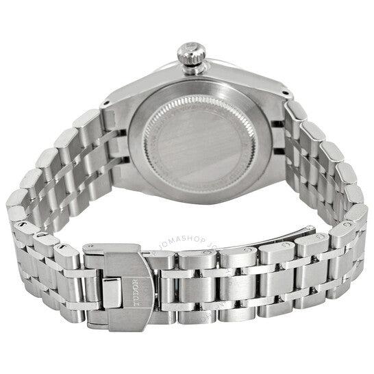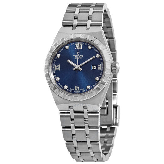 علبة من الفولاذ المقاوم للصدأ مع سوار من الفولاذ المقاوم للصدأ. إطار ثابت من الفولاذ المقاوم للصدأ. ميناء أزرق مع عقارب فضية مضيئة وعلامات ساعات من الماس. تظهر الأرقام الرومانية عند الساعة 3، 6، 9، و12. علامات الدقائق حول الحافة الخارجية. نوع الميناء: تناظري. عقارب مضيئة. عرض التاريخ عند الساعة 3. حركة أوتوماتيكية من عيار تيودور T201، مبنية على ETA 2671، تحتوي على 25 جوهرة، تنبض بمعدل 28800 ذبذبة في الساعة، ولديها احتياطي طاقة لمدة 38 ساعة تقريبًا. زجاج من الياقوت المقاوم للخدش. تاج لولبي. شكل العلبة دائري. حجم العلبة: 28 مم. مشبك قابل للطي. مقاومة للماء حتى عمق 100 متر / 330 قدمًا. الوظائف: التاريخ، الساعة، الدقيقة، الثانية. سلسلة رويال. طراز ساعة رسمية. علامة الساعة: صناعة سويسرية. ساعة تيودور رويال أوتوماتيكية بمينا زرقاء مرصعة بالألماس M28300-0007.