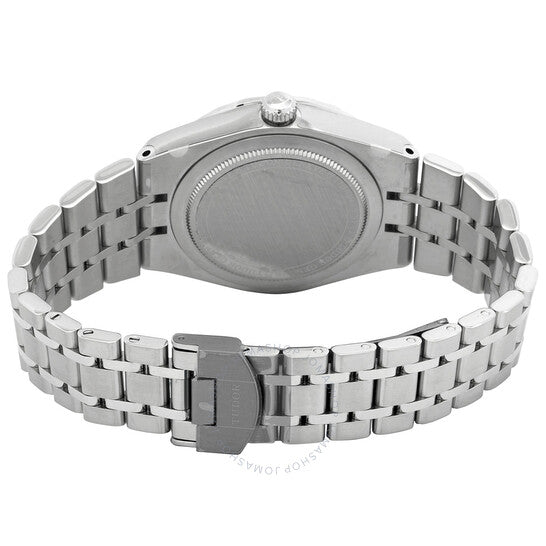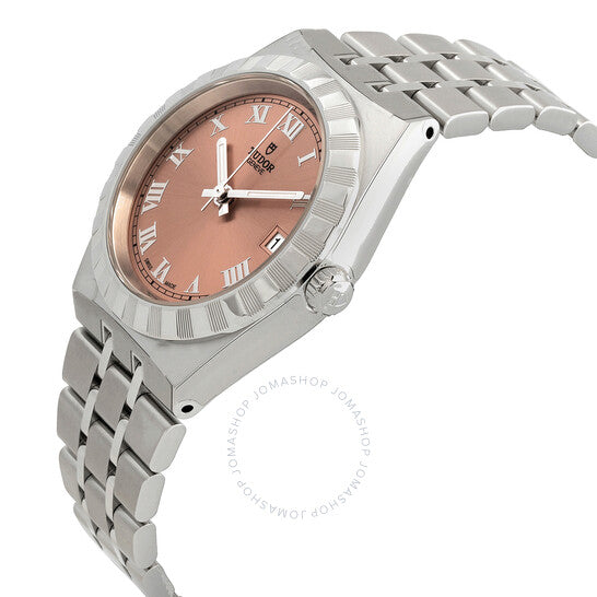 علبة وسوار من الفولاذ المقاوم للصدأ فضي اللون. إطار ثابت من الفولاذ المقاوم للصدأ فضي اللون. ميناء بلون السلمون مع عقارب فضية اللون وعلامات ساعات بأرقام رومانية. علامات دقائق حول الحافة الخارجية. نوع الميناء: تناظري. عقارب مضيئة. عرض التاريخ عند موضع الساعة 3. حركة أوتوماتيكية من طراز تيودور كاليبر T601، مبنية على ETA 2824، تحتوي على 25 جوهرة، تنبض بمعدل 28800 ذبذبة في الساعة، ولديها احتياطي طاقة يدوم حوالي 38 ساعة. زجاج من الياقوت المقاوم للخدش. تاج لولبي. غطاء خلفي صلب. شكل العلبة دائري، مقاسها 34 مم. مشبك قابل للطي مع مفتاح أمان. مقاومة للماء حتى عمق 100 متر / 330 قدمًا. الوظائف: التاريخ، الساعة، الدقيقة، الثانية. سلسلة رويال. تصميم ساعة فاخرة. علامة الساعة: صناعة سويسرية. ساعة تيودور رويال أوتوماتيكية نسائية بمينا بلون السلمون M28400-0009.