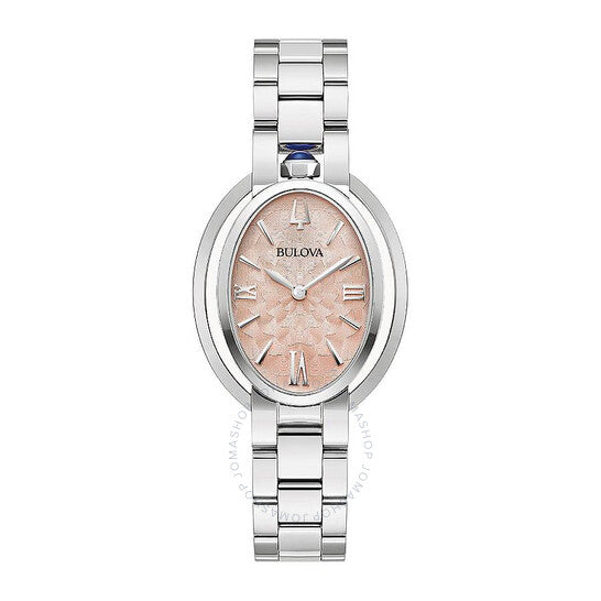 علبة وسوار من الفولاذ المقاوم للصدأ فضي اللون. إطار ثابت من الفولاذ المقاوم للصدأ فضي اللون. ميناء بلون السلمون مع عقارب فضية اللون ومؤشرات ساعات بأرقام عربية. نوع الميناء: تناظري. حركة كوارتز بولوفا كاليبر GL24. كريستال ياقوتي مقاوم للخدش. غطاء خلفي صلب. شكل العلبة بيضاوي، مقاسها: 28.8 مم. عرض السوار: 8 مم. مشبك قابل للطي مع مفتاح أمان. مقاومة للماء حتى عمق 30 مترًا / 100 قدم. الوظائف: الساعات، الدقائق. سلسلة رباعيات. طراز الساعة الرياضية. علامة الساعة: صناعة سويسرية. ساعة بولوفا رباعيات كوارتز نسائية 96L331.