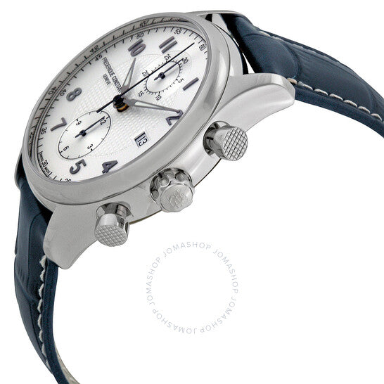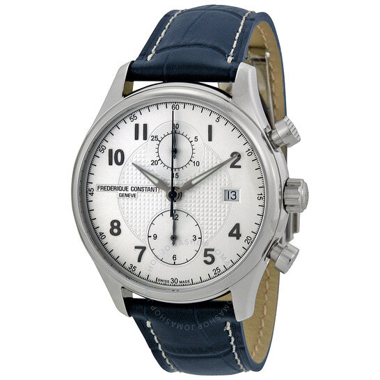 علبة من الفولاذ المقاوم للصدأ مع سوار من جلد العجل الأزرق. إطار ثابت من الفولاذ المقاوم للصدأ. ميناء فضي مع عقارب مضيئة فضية اللون على شكل حرف ألفا وعلامات ساعات بأرقام عربية. علامات دقائق حول الحافة الخارجية. نوع الميناء: تناظري. عقارب مضيئة. عرض التاريخ عند موضع الساعة 3. كرونوغراف - ميناءان فرعيان يعرضان: ١٢ ساعة و٣٠ دقيقة. حركة أوتوماتيكية من عيار فريدريك كونستانت FC-393، تحتوي على ٢٥ جوهرة، تنبض بتردد ٢٨٨٠٠ ذبذبة في الساعة، ولديها احتياطي طاقة لمدة ٤٦ ساعة تقريبًا. زجاج من الياقوت المقاوم للخدش. تاج لولبي. ظهر هيكلي. شكل دائري. حجم الهيكل: ٤٢ مم. سمك الهيكل: ١٥ مم. عرض السوار: ٢٠ مم. مشبك قابل للطي. مقاومة للماء حتى عمق ٥٠ مترًا / ١٦٥ قدمًا. الوظائف: كرونوغراف، تاريخ، ساعة، دقيقة، ثانية. طراز ساعة فاخرة. ملصق الساعة: صناعة سويسرية. إصدارات المنتج: FC 393RM5B6، FC.393RM5B6، FC393RM5B6. ساعة فريدريك كونستانت ران أباوت كرونوغراف أوتوماتيكية للرجال، FC-393RM5B6.