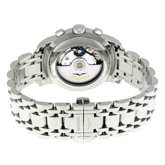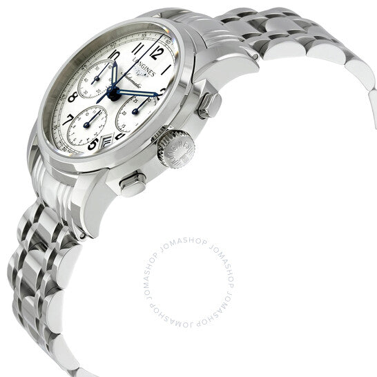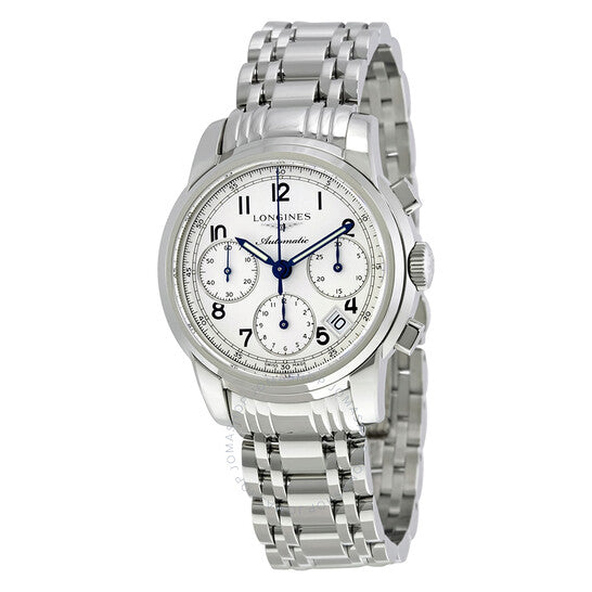 علبة من الفولاذ المقاوم للصدأ مع سوار من الفولاذ المقاوم للصدأ. إطار ثابت من الفولاذ المقاوم للصدأ. ميناء فضي مع عقارب زرقاء مضيئة وعلامات ساعات رقمية عربية. علامات دقائق رقمية عربية (بفاصل 5 دقائق). علامات دقائق حول الحافة الخارجية. نوع الميناء: تناظري. عقارب مضيئة. عرض التاريخ بين موضعي الساعة 4 و5. كرونوغراف - ثلاثة أقراص فرعية تعرض: 60 ثانية، 30 دقيقة، و12 ساعة. حركة لونجين أوتوماتيكية عيار L688، مبنية على ETA A08.L01، تحتوي على 27 جوهرة، تنبض بمعدل 28800 ذبذبة في الساعة، ولديها احتياطي طاقة لمدة 54 ساعة تقريبًا. زجاج ياقوت مقاوم للخدش. تاج قابل للسحب/الدفع. غطاء خلفي شفاف. شكل دائري. حجم الهيكل: 39 مم. سمك الهيكل: 14 مم. عرض السوار: 19 مم. مشبك قابل للطي بزر ضغط. مقاومة للماء حتى عمق 30 مترًا / 100 قدم. الوظائف: كرونوغراف، عجلة عمودية، تاريخ، ساعات، دقائق، ثوانٍ صغيرة. سلسلة سانت إيمييه. تصميم فاخر. علامة الساعة: صناعة سويسرية. رقم المنتج: L27534736. ساعة لونجين سانت إيمييه كرونوغراف أوتوماتيكية للرجال L2.753.4.73.6.