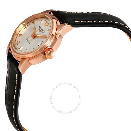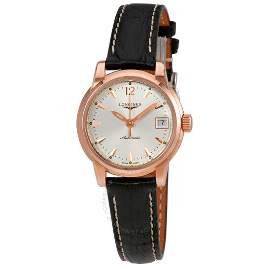 علبة من الذهب الوردي عيار 18 قيراطًا مع سوار جلدي أسود. إطار ثابت. ميناء فضي بعقارب بلون الذهب الوردي ومؤشر عربي عند الساعة 12. نوع الميناء: تناظري. عرض التاريخ عند الساعة 3. آلية حركة أوتوماتيكية. زجاج ياقوتي مقاوم للخدش. غطاء خلفي شفاف هيكلي. حجم العلبة: 26 مم. شكلها دائري. مقاومة للماء حتى عمق 30 مترًا / 100 قدم. الوظائف: التاريخ، الساعة، الدقائق، الثواني. تصميم ساعة فاخرة. علامة الساعة: صناعة سويسرية. ساعة لونجين سانت إيمييه نسائية بمينا فضي، L2.263.8.72.3.