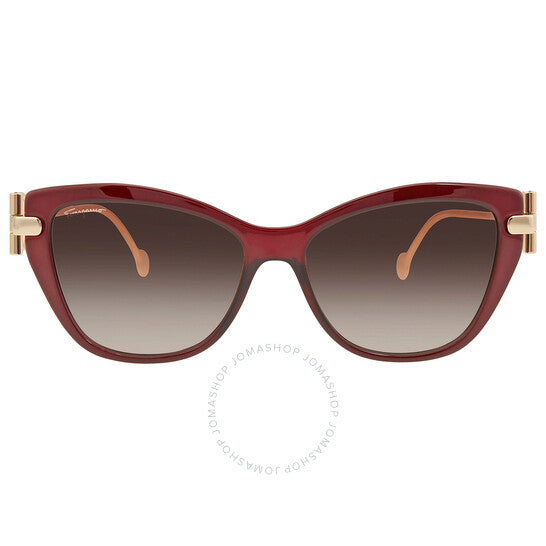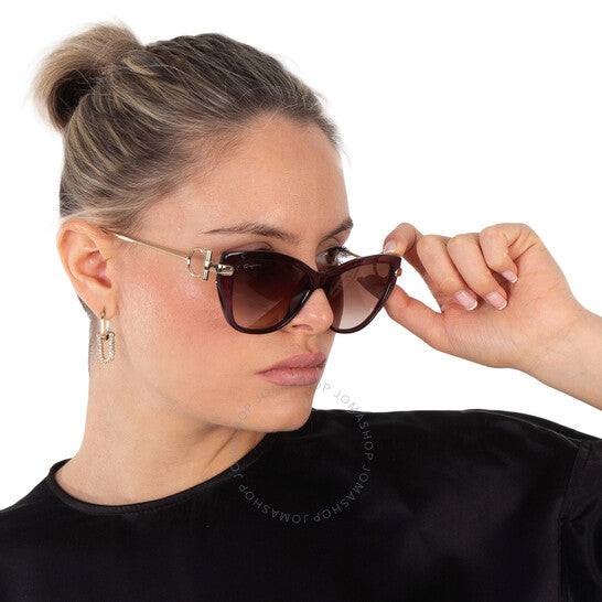 نظارات شمسية من سلفاتوري فيراغامو. رقم السلسلة: SF928S. رمز اللون: 606. المقاس: 55. الشكل: عين القطة. عرض العدسة: 55 مم. جسر العدسة: 15 مم. طول الذراع: 140 مم. حماية 100% من الأشعة فوق البنفسجية. غير مستقطب. مادة الإطار: بلاستيك. لون الإطار: خمري. نوع العدسات: بني متدرج. نمط الحافة: حافة كاملة. رمز UPC/EAN: 886895421270. نظارات شمسية من سلفاتوري فيراغامو بنية متدرجة، عين القطة، SF928S 606 55.