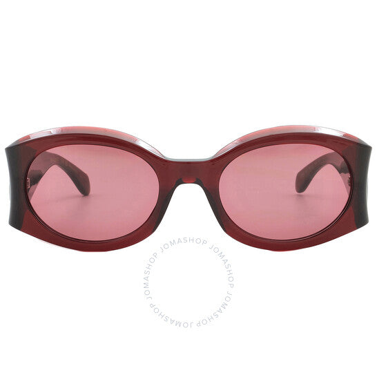 نظارات شمسية من سلفاتوري فيراغامو. رقم السلسلة: SF2008S. رمز اللون: 612. الشكل: بيضاوي. عرض العدسة: 55 مم. جسر العدسة: 22 مم. طول الذراع: 140 مم. حماية 100% من الأشعة فوق البنفسجية. غير مستقطبة. مادة الإطار: بلاستيك. لون الإطار: عنابي شفاف. نوع العدسات: عنابي. نمط الحافة: حافة كاملة. رمز UPC/EAN: 886895629911. نظارات شمسية نسائية بيضاوية من سلفاتوري فيراغامو، لون عنابي، SF2008S، 612 55.