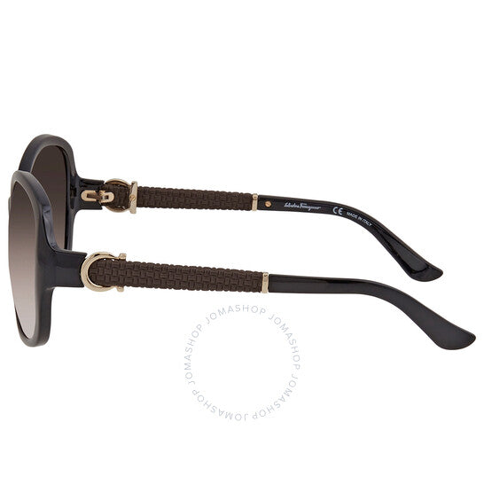 نظارات شمسية من سلفاتوري فيراغامو. رقم السلسلة: SF744SLA. رمز اللون: 001. الشكل: فراشة. عرض العدسة: 59 مم. جسر العدسة: 15 مم. طول الذراع: 135 مم. حماية 100% من الأشعة فوق البنفسجية. غير مستقطبة. مادة الإطار: بلاستيك. لون الإطار: أسود. نوع العدسات: رمادي متدرج. نمط الحافة: حافة كاملة. رمز UPC/EAN: 886895211239. نظارات شمسية نسائية من سلفاتوري فيراغامو رمادية متدرجة بتصميم فراشة SF744SLA 001 59.