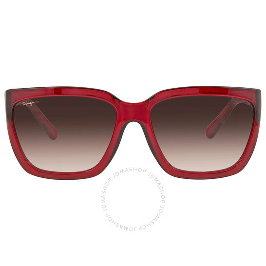 نظارات شمسية من سلفاتوري فيراغامو. رقم السلسلة: SF1018S. رمز اللون: 655. الشكل: مستطيل. عرض العدسة: 59 مم. جسر العدسة: 17 مم. طول الذراع: 140 مم. حماية 100% من الأشعة فوق البنفسجية. مادة الإطار: بلاستيك. لون الإطار: نبيذي كريستالي. نوع العدسات: رمادي. نمط الحافة: حافة كاملة. رمز UPC/EAN: 886895492577. نظارات شمسية نسائية رمادية مستطيلة من سلفاتوري فيراغامو SF1018S 655 5917.