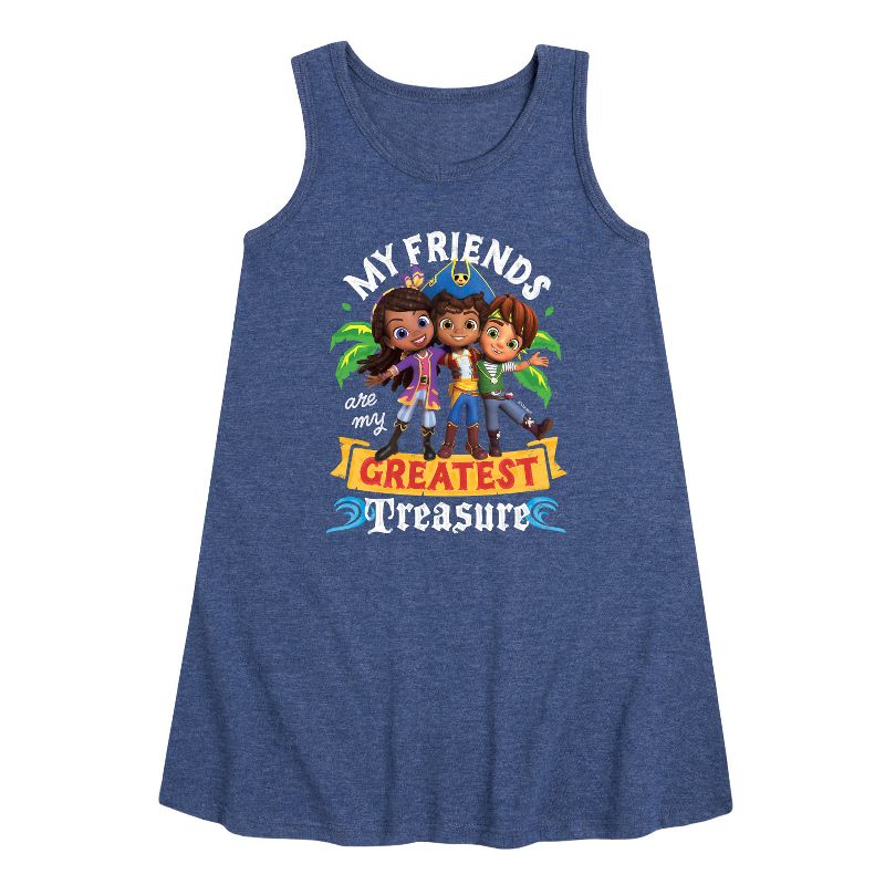 فستان سانتياغو البحري - كنز أصدقائي الأعظم - فستان بقصة حرف A للفتيات الصغيرات والشابات