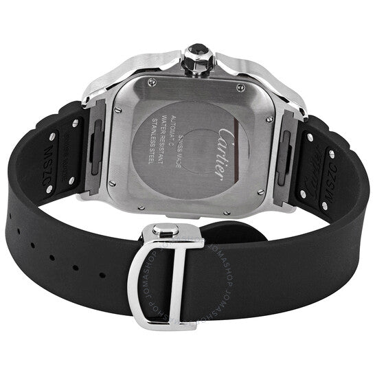 علبة من الفولاذ المقاوم للصدأ مع سوار مطاطي أسود. إطار أسود ثابت من مادة ADLC. ميناء فضي بعقارب سوداء مضيئة وعلامات ساعات رومانية. علامات دقائق حول الحافة الخارجية. نوع الميناء: تناظري. عقارب مضيئة. عرض التاريخ عند موضع الساعة السادسة. كرونوغراف - ثلاثة أقراص فرعية تعرض: ٦٠ ثانية، ٣٠ دقيقة، و١٢ ساعة. حركة أوتوماتيكية من كارتييه، عيار ١٩٠٤ CH MC. كريستال ياقوت مقاوم للخدش. تاج قابل للسحب/الدفع. غطاء خلفي صلب. شكل العلبة مربع. حجم العلبة: ٤٣.٣ مم. سمكها: ١٢.٥ مم. عرض السوار: ٢٠ مم. مشبك بزر ضغط. مقاومة للماء حتى عمق ١٠٠ متر / ٣٣٠ قدمًا. الوظائف: كرونوغراف، تاريخ، ساعة، دقيقة، ثانية. معلومات إضافية: سوار ثواني من جلد التمساح الأسود "غوما". طراز ساعة فاخرة. علامة الساعة: سويسرية الصنع. ساعة كارتييه سانتوس XL كرونوغراف أوتوماتيكية للرجال بمينا فضي WSSA0017.