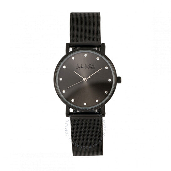 علبة من سبيكة معدنية سوداء مع سوار من سبيكة معدنية سوداء. إطار ثابت من سبيكة معدنية سوداء. ميناء أسود بعقارب فضية اللون وعلامات ساعات من الكريستال. نوع الميناء: تناظري. حركة كوارتز. زجاج معدني مقاوم للخدش. تاج قابل للسحب/الدفع. غطاء خلفي صلب. شكل العلبة دائري، مقاسها: ٣٢ مم، سمكها: ٨ مم. عرض السوار: ١٦ مم. علبة مزودة بلسان ومشبك أمان. مقاومة للماء حتى عمق ٣٠ مترًا / ١٠٠ قدم. الوظائف: الساعات، الدقائق، الثواني. طراز ساعة رسمية. علامة الساعة: Japan Movt. رقم الموديل: SAFSF4203. ساعة صوفي وفريدا سافانا النسائية بمينا كريستالي أسود SF4203.