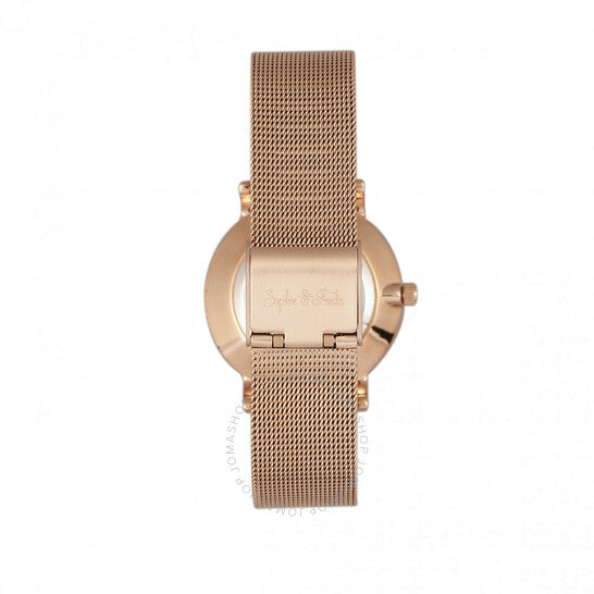 علبة من سبيكة معدنية بلون الذهب الوردي مع سوار من سبيكة بلون الذهب الوردي. إطار ثابت من سبيكة بلون الذهب الوردي. ميناء من الذهب الوردي مع عقارب ذهبية اللون وعلامات ساعات من الكريستال. نوع الميناء: تناظري. حركة كوارتز. زجاج معدني مقاوم للخدش. تاج قابل للسحب/الدفع. غطاء خلفي صلب. شكل دائري، مقاس العلبة: 32 مم، سمكها: 8 مم. عرض السوار: 16 مم. علبة مزودة بلسان ومشبك أمان. مقاومة للماء حتى عمق 30 مترًا / 100 قدم. الوظائف: الساعات، الدقائق، الثواني. طراز ساعة رسمية. علامة الساعة: Japan Movt. رقم الموديل: SAFSF4202. ساعة صوفي وفريدا سافانا كريستال نسائية بمينا ذهبي وردي SF4202.