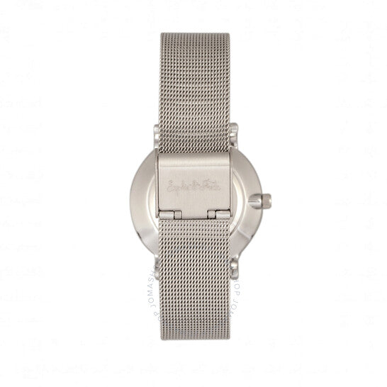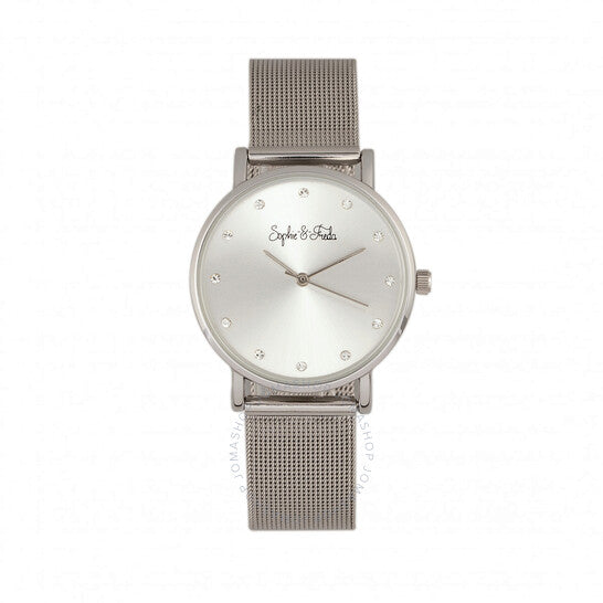 علبة من سبيكة فضية اللون مع سوار فضي اللون. إطار ثابت من سبيكة فضية اللون. ميناء فضي اللون مع عقارب فضية اللون وعلامات ساعات من الكريستال. نوع الميناء: تناظري. حركة كوارتز. زجاج معدني مقاوم للخدش. تاج قابل للسحب/الدفع. غطاء خلفي صلب. شكل العلبة دائري، مقاسها: ٣٢ مم، سمكها: ٨ مم. عرض السوار: ١٦ مم. علبة مزودة بلسان ومشبك أمان. مقاومة للماء حتى عمق ٣٠ مترًا / ١٠٠ قدم. الوظائف: الساعات، الدقائق، الثواني. طراز ساعة رسمية. علامة الساعة: Japan Movt. متغيرات المنتج: SAFSF4201. ساعة صوفي وفريدا سافانا كريستال نسائية بمينا فضي SF4201.