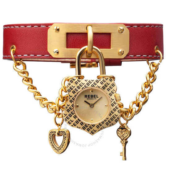 علبة من الفولاذ المقاوم للصدأ بلون ذهبي مع سوار جلدي أحمر. إطار ثابت من الفولاذ المقاوم للصدأ بلون ذهبي. ميناء ذهبي مع عقارب ذهبية اللون وعلامات ساعات. نوع الميناء: تناظري. حركة كوارتز. زجاج معدني مقاوم للخدش مع كريستال مطلي بالياقوت. تاج ضغط/سحب. غطاء خلفي صلب. شكل دائري، مقاس العلبة: ٢٥ مم، سمكها: ٧ مم. عرض السوار: ١٦ مم، طوله: ٧.٥ بوصة. مشبك تانغ. مقاومة للماء حتى عمق ٥٠ مترًا / ١٦٥ قدمًا. الوظائف: الساعات، الدقائق. تصميم كاجوال. ساعة ريبيل سيجيت النسائية بمينا ذهبي RB114-9051.