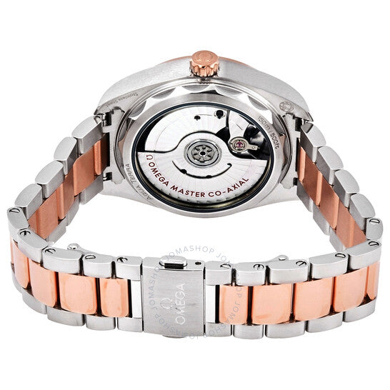 علبة من الفولاذ المقاوم للصدأ بإطار من الفولاذ المقاوم للصدأ مع وصلات مركزية من ذهب سيدنا عيار 18 قيراطًا. إطار ثابت من ذهب سيدنا عيار 18 قيراطًا. ميناء أزرق مع عقارب مضيئة على شكل سهم من الذهب الوردي وعلامات ساعات. نوع الميناء: تناظري. عقارب وعلامات مضيئة. عرض التاريخ عند موضع الساعة السادسة. حركة أوتوماتيكية من أوميغا كاليبر 8800، تحتوي على 35 جوهرة، تنبض بمعدل 25200 ذبذبة في الساعة، وتحتفظ باحتياطي طاقة يدوم حوالي 55 ساعة. زجاج ياقوت مقاوم للخدش. غطاء خلفي شفاف. شكل دائري. حجم العلبة: 34 مم. عرض السوار: 16 مم. مشبك قابل للطي. مقاومة للماء حتى عمق 150 مترًا / 500 قدم. الوظائف: التاريخ، الساعة، الدقائق، الثواني. سلسلة سيماستر أكوا تيرا. تصميم ساعة فاخرة. علامة الساعة: صناعة سويسرية. ساعة أوميجا سيماستر أكوا تيرا أوتوماتيكية بمينا أزرق 220.20.34.20.03.001.