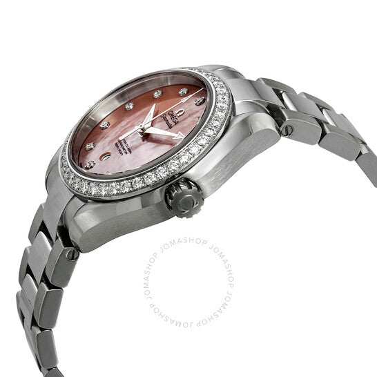 علبة من الفولاذ المقاوم للصدأ مع سوار من الفولاذ المقاوم للصدأ. إطار ثابت من الفولاذ المقاوم للصدأ مرصع بالألماس. ميناء وردي من عرق اللؤلؤ مع عقارب فضية مضيئة على شكل سهم وعلامات ساعات من الألماس. نوع الميناء: تناظري. عقارب مضيئة. نافذة عرض التاريخ فوق موضع الساعة السادسة. حركة أوتوماتيكية من أوميغا كاليبر 8520، مستوحاة من أوميغا 8500، تحتوي على 28 جوهرة، تنبض بمعدل 25200 ذبذبة في الساعة، ولديها احتياطي طاقة يصل إلى حوالي 50 ساعة. زجاج من الياقوت المقاوم للخدش. تاج لولبي. غطاء خلفي شفاف. شكل دائري. حجم العلبة: 34 مم. سمكها: 13 مم. عرض السوار: 16 مم. مشبك قابل للطي. مقاومة للماء حتى عمق 150 مترًا / 500 قدم. الوظائف: التاريخ، الساعات، الدقائق، الثواني، ميزان محوري، كرونومتر. طراز ساعة فاخرة. علامة الساعة: سويسرية الصنع. ساعة أوميغا سيماستر أكوا تيرا أوتوماتيكية مرصعة بالألماس للسيدات 231.15.34.20.57.003.