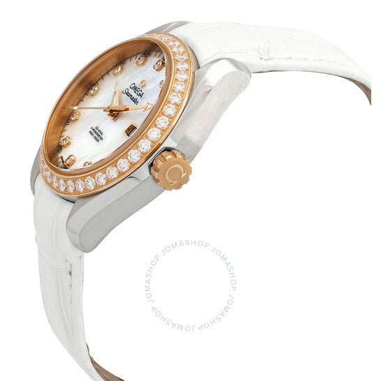 علبة من الفولاذ المقاوم للصدأ مع سوار جلدي أبيض. إطار ثابت من الذهب الأصفر عيار 18 قيراطًا مرصع بالألماس. ميناء أبيض من عرق اللؤلؤ مع عقارب ذهبية اللون وعلامات ساعات من الألماس. علامات دقائق حول الحافة الخارجية. نوع الميناء: تناظري. عقارب مضيئة. عرض التاريخ عند موضع الساعة 3. حركة أوتوماتيكية من أوميغا كاليبر 8520 مع احتياطي طاقة يصل إلى 50 ساعة. زجاج ياقوت مقاوم للخدش. حجم العلبة: 34 مم. شكل العلبة دائري. مشبك قابل للطي. مقاومة للماء حتى عمق 150 مترًا / 500 قدم. الوظائف: التاريخ، الساعات، الدقائق، الثواني، ميزان محوري، كرونومتر. طراز ساعة فاخرة. علامة الساعة: صناعة سويسرية. ساعة أوميغا سيماستر أكوا تيرا أوتوماتيكية نسائية 231.28.34.20.55.001.