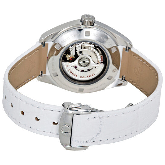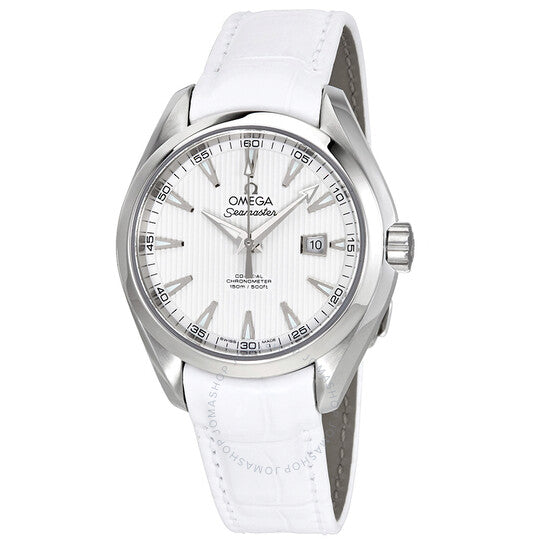 علبة من الفولاذ المقاوم للصدأ مع سوار أبيض من جلد التمساح. إطار ثابت من الفولاذ المقاوم للصدأ. ميناء أبيض مع عقارب ومؤشرات ساعات فضية مضيئة. مؤشرات دقائق حول الحافة الخارجية. نوع الميناء: تناظري. عقارب ومؤشرات مضيئة. عرض التاريخ عند موضع الساعة 3. حركة أوميجا كاليبر 8520 أوتوماتيكية باحتياطي طاقة يصل إلى 50 ساعة. زجاج ياقوت مقاوم للخدش. تاج لولبي. غطاء خلفي شفاف. شكل دائري. حجم العلبة: 34 مم. سمكها: 12.5 مم. عرض السوار: 16 مم. مشبك قابل للطي. مقاومة للماء حتى عمق 150 مترًا / 500 قدم. الوظائف: التاريخ، الساعة، الدقيقة، الثانية، الكرونومتر. معلومات إضافية: مناسبة بشكل عام لركوب الأمواج الترفيهي والغطس والرياضات المائية، ولكنها ليست مناسبة للغوص. طراز ساعة فاخرة. علامة الساعة: سويسرية الصنع. ساعة أوميغا سيماستر أكوا تيرا أوتوماتيكية للسيدات 23113342004001.
