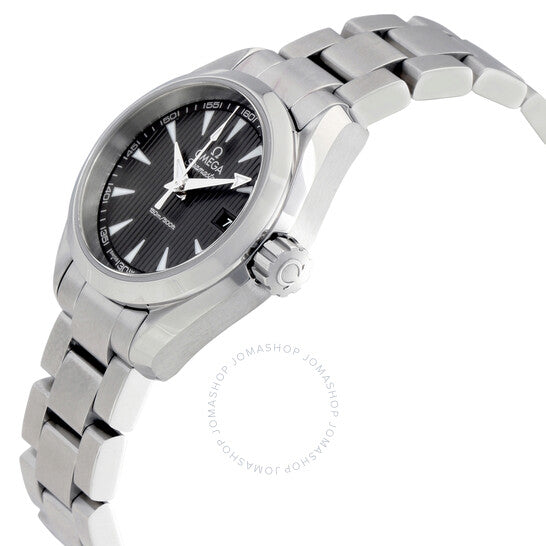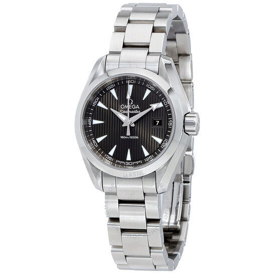 علبة من الفولاذ المقاوم للصدأ مع سوار من الفولاذ المقاوم للصدأ. إطار ثابت من الفولاذ المقاوم للصدأ. ميناء من خشب الساج الرمادي بنقش غيوشيه، مع عقارب مضيئة فضية اللون وعلامات ساعات. علامات دقائق حول الحافة الخارجية. نوع الميناء: تناظري. عقارب مضيئة. عرض التاريخ عند موضع الساعة 3. حركة كوارتز. زجاج ياقوت مقبب، مضاد للانعكاس، ومقاوم للخدش. تاج لولبي. غطاء خلفي صلب. قطر العلبة: 30 مم. شكل العلبة دائري. مشبك قابل للطي. مقاومة للماء حتى عمق 150 مترًا / 500 قدم. الوظائف: التاريخ، الساعة، الدقائق، الثواني. تصميم كاجوال. علامة الساعة: صناعة سويسرية. ساعة أوميغا سيماستر أكوا تيرا، مينا رمادي من خشب الساج، ستانلس ستيل، 231.10.30.60.06.001.