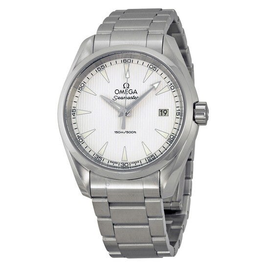 علبة من الفولاذ المقاوم للصدأ مع سوار من الفولاذ المقاوم للصدأ. إطار ثابت من الفولاذ المقاوم للصدأ. ميناء فضي مزخرف بنقش غيوشيه مع عقارب ومؤشرات ساعات فضية مضيئة. مؤشرات دقائق حول الحافة الخارجية. نوع الميناء: تناظري. عقارب ومؤشرات مضيئة. عرض التاريخ عند موضع الساعة 3. حركة كوارتز. زجاج ياقوت مقاوم للخدش. تاج لولبي. غطاء خلفي صلب. قطر العلبة: 38.5 مم. سمكها: 11 مم. شكلها دائري. عرض السوار: 18 مم. مشبك قابل للطي بزر ضغط. مقاومة للماء حتى عمق 150 مترًا / 500 قدم. الوظائف: التاريخ، الساعة، الدقائق، الثواني. تصميم كاجوال. علامة الساعة: صناعة سويسرية. ساعة أوميغا سيماستر أكوا تيرا للرجال 23110396002001.