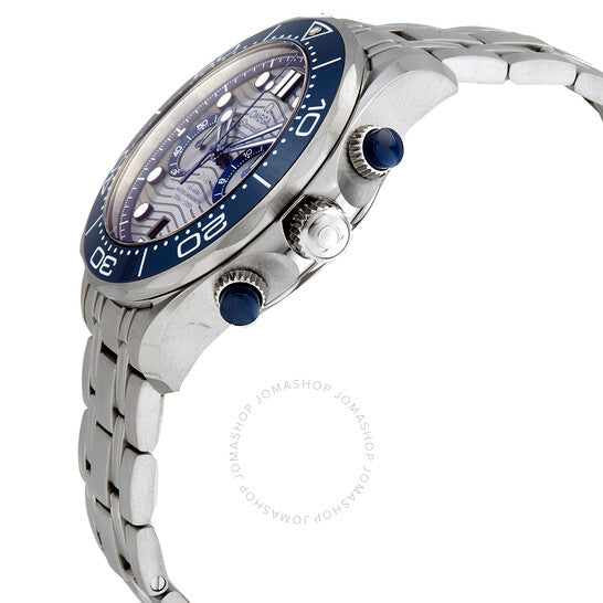 علبة من الفولاذ المقاوم للصدأ مع سوار من الفولاذ المقاوم للصدأ. إطار دوار أحادي الاتجاه من الفولاذ المقاوم للصدأ مع حلقة علوية من السيراميك الأزرق (للعد التصاعدي للوقت المنقضي). ميناء رمادي (متموج) بعقارب زرقاء مضيئة وعلامات ساعات منقطة. علامات دقائق حول الحافة الخارجية. نوع الميناء: تناظري. عقارب وعلامات مضيئة. عرض التاريخ عند موضع الساعة السادسة. كرونوغراف - ميناءان فرعيان يعرضان: 60 ثانية و12 ساعة. حركة أوميجا كاليبر 9900 أوتوماتيكية، مستوحاة من أوميجا 9300، تحتوي على 54 جوهرة، تنبض بمعدل 28800 ذبذبة في الساعة، ولديها احتياطي طاقة لمدة 60 ساعة تقريبًا. زجاج ياقوت مقاوم للخدش. تاج لولبي. غطاء خلفي شفاف. شكل دائري، حجم العلبة: 44 مم. عرض السوار: 21 مم. مشبك قابل للطي بزر ضغط للتحرير. مقاومة للماء حتى عمق 300 متر / 1000 قدم. الوظائف: كرونوغراف، تاريخ، ساعات، دقائق، ثوانٍ، كرونومتر. سلسلة سيماستر. طراز ساعة غوص. علامة الساعة: صناعة سويسرية. ساعة أوميغا سيماستر كرونوغراف أوتوماتيكية كرونومتر بمينا رمادية 210.30.44.51.06.001.