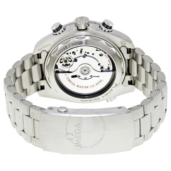 علبة من الفولاذ المقاوم للصدأ مع سوار من الفولاذ المقاوم للصدأ. إطار دوار أحادي الاتجاه من الفولاذ المقاوم للصدأ بحافة عملة معدنية مع حلقة علوية من السيراميك الأزرق (للعد التصاعدي للوقت المنقضي). ميناء أزرق مع عقارب فضية مضيئة على شكل سهم وعلامات ساعات. يظهر رقم عربي عند موضع الساعة 12. علامات الدقائق حول الحافة الخارجية. نوع الميناء: تناظري. عقارب وعلامات مضيئة. عرض التاريخ عند موضع الساعة 6. كرونوغراف - ميناءان فرعيان يعرضان: 60 ثانية و12 ساعة. حركة أوتوماتيكية من أوميغا كاليبر 9900، مبنية على أوميغا 9300، تحتوي على 54 جوهرة، تنبض بمعدل 28800 ذبذبة في الساعة، ولديها احتياطي طاقة لمدة 60 ساعة تقريبًا. كريستال ياقوت مقاوم للخدش. تاج لولبي. غطاء خلفي شفاف. شكل دائري. حجم العلبة: 45.5 مم. سمك العلبة: 18.87 مم. عرض السوار: 22 مم. مشبك قابل للطي بزر ضغط مزدوج. مقاوم للماء حتى عمق 600 متر / 2000 قدم. الوظائف: كرونوغراف، تاريخ، ساعات، دقائق، ثوانٍ، ميزان محوري، كرونومتر. سلسلة سيماستر بلانيت أوشن. طراز ساعة غوص. علامة الساعة: صناعة سويسرية. ساعة أوميغا سيماستر بلانيت أوشن كرونوغراف أوتوماتيكية للرجال 215.30.46.51.03.001.