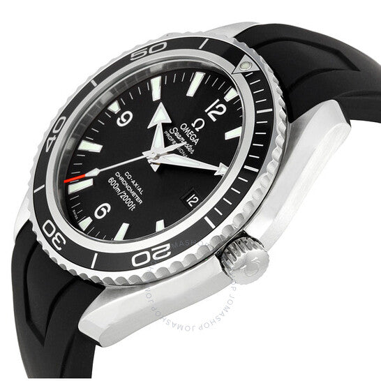 علبة من الفولاذ المقاوم للصدأ مع سوار مطاطي أسود. إطار دوار أحادي الاتجاه مطلي بالأيونات السوداء. ميناء أسود بعقارب فضية اللون وعلامات ساعات لاصقة. أرقام عربية تُشير إلى الساعات 6 و9 و12. علامات دقائق حول الحافة الخارجية. يعرض التاريخ عند الساعة 3. حركة أوتوماتيكية باحتياطي طاقة يصل إلى 48 ساعة. زجاج من الياقوت المقاوم للخدش. غطاء خلفي صلب. قطر العلبة: 45.2 مم. سُمكها: 15.2 مم. مشبك تانغ. مقاومة للماء حتى عمق 600 متر / 2000 قدم. الوظائف: الساعات، الدقائق، الثواني، التاريخ. ساعة أوميغا سيماستر بلانيت أوشن للرجال 2900.50.91.