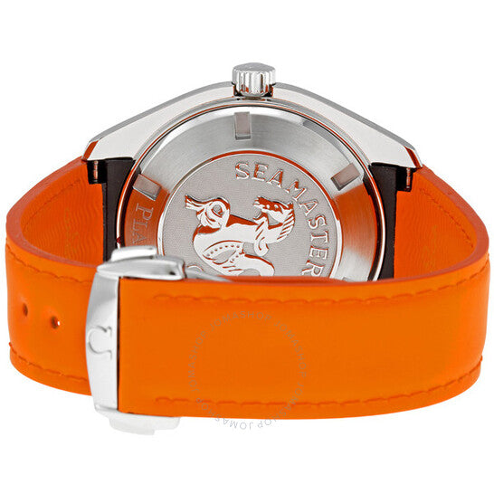 علبة من الفولاذ المقاوم للصدأ مع سوار مطاطي برتقالي. إطار دوار أحادي الاتجاه برتقالي مطلي بالأيونات. ميناء أسود بعقارب مضيئة على شكل أسهم ومؤشرات ساعات. أرقام عربية تُشير إلى الساعات 6 و9 و12. علامات دقائق حول الحافة الخارجية. عقارب ومؤشرات مضيئة. نافذة عرض التاريخ عند الساعة 3. حركة كرونومتر أوتوماتيكية ذاتية التعبئة محورية. زجاج ياقوت مقاوم للخدش. غطاء خلفي صلب. قطر العلبة: 45 مم. مشبك قابل للطي. مقاومة للماء حتى عمق 600 متر (2000 قدم). ساعة أوميغا سيماستر بلانيت أوشن للرجال 2908.50.83.