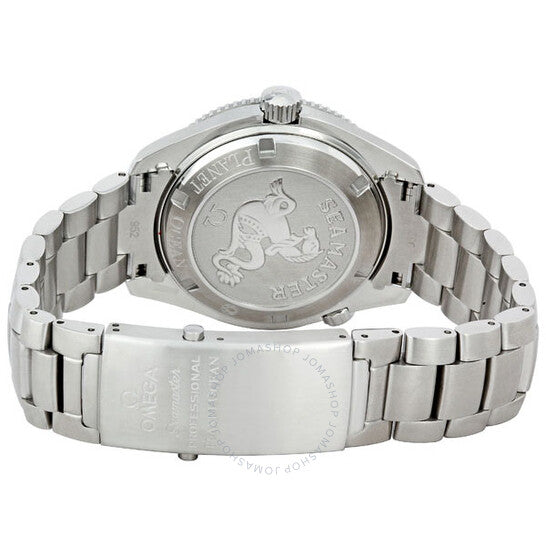 علبة من الفولاذ المقاوم للصدأ مع سوار من الفولاذ المقاوم للصدأ. إطار دوار أحادي الاتجاه. ميناء أسود بعقارب مضيئة ومؤشرات ساعات. أرقام عربية حمراء تُشير إلى مواقع الساعات 6 و9 و12. مؤشرات دقائق حول الحافة الخارجية. نوع الميناء: تناظري. عقارب ومؤشرات ميناء مضيئة. يعرض التاريخ عند موضع الساعة 3. حركة أوتوماتيكية من عيار 2500 مع احتياطي طاقة يصل إلى حوالي 48 ساعة. زجاج ياقوت مزدوج الوجه مقاوم للخدش ومضاد للانعكاس. تاج ببرغي. غطاء خلفي صلب. حجم العلبة: 42 مم. سمكها: 14.5 مم. شكل دائري. مشبك قابل للطي بزر ضغط. مقاومة للماء حتى عمق 600 متر / 2000 قدم. الوظائف: الساعات، الدقائق، الثواني، التقويم. معلومات إضافية: صمام تفريغ محوري/هيليوم. طراز الساعة الرياضية. ملصق الساعة: صناعة سويسرية. اختلافات المنتج: 2201.51، 2201.51.00، 2201-51، 2201-51-00، 2201/51، 220151، 2201. ساعة أوميجا سيماستر بلانيت أوشن ستيل XL للرجال 2201.51.
