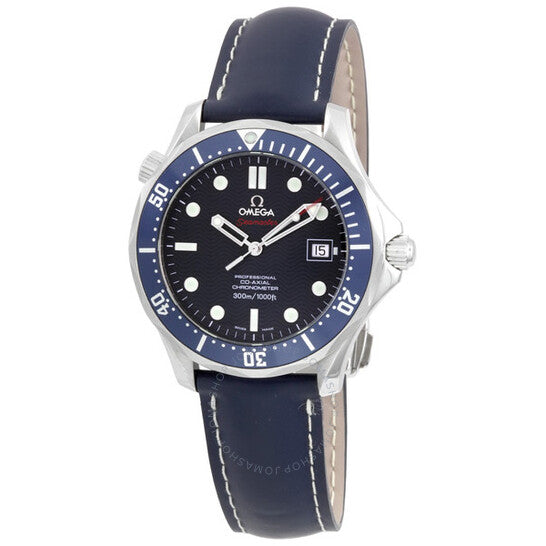 علبة من الفولاذ المقاوم للصدأ مع سوار جلدي أزرق. إطار أزرق دوار أحادي الاتجاه مطلي بالأيونات. ميناء أزرق بعقارب مضيئة وعلامات ساعات مضيئة على شكل نقاط، وعلامات دقائق حول الحافة الخارجية. علامات دقائق حول الحافة الخارجية. عقارب وعلامات ميناء مضيئة. يعرض التاريخ عند موضع الساعة 3. حركة أوتوماتيكية. زجاج ياقوت مقاوم للخدش ومضاد للانعكاس. تاج مثبت ببرغي. غطاء خلفي صلب. قطر العلبة: 41 مم. سُمكها: 13 مم. مشبك قابل للطي. مقاومة للماء حتى عمق 300 متر / 1000 قدم. الوظائف: الساعات، الدقائق، الثواني، التقويم. معلومات إضافية: صمام تفريغ هيليوم؛ احتياطي طاقة لمدة 44 ساعة/ ميزان محوري. ساعة أوميغا سيماستر للرجال بسوار فولاذي أزرق 2920.80.91.