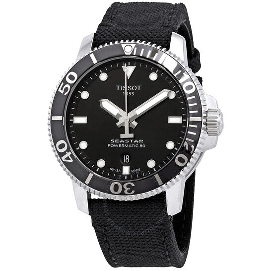 علبة من الفولاذ المقاوم للصدأ مع سوار من القماش الأسود (مادة صناعية). إطار دوار أحادي الاتجاه من الفولاذ المقاوم للصدأ مع حلقة سيراميك سوداء. ميناء أسود بعقارب فضية مضيئة وعلامات ساعات منقطة. علامات دقائق حول الحافة الخارجية. نوع الميناء: تناظري. عقارب وعلامات مضيئة. عرض التاريخ عند موضع الساعة السادسة. حركة أوتوماتيكية Powermatic 80.111 مع احتياطي طاقة يصل إلى 80 ساعة. زجاج ياقوت مقاوم للخدش. تاج لولبي. غطاء خلفي شفاف. شكل دائري. حجم العلبة: 43 مم. سمكها: 12.7 مم. عرض السوار: 21 مم. مشبك فراشة. مقاومة للماء حتى عمق 300 متر / 1000 قدم. الوظائف: التاريخ، الساعة، الدقيقة، الثانية. طراز ساعة الغوص. علامة الساعة: صناعة سويسرية. ساعة تيسوت سيستار 1000 أوتوماتيكية للرجال بمينا أسود T120.407.17.051.00.